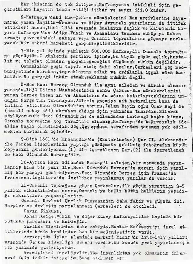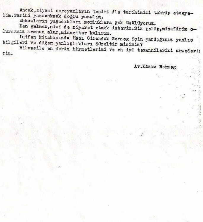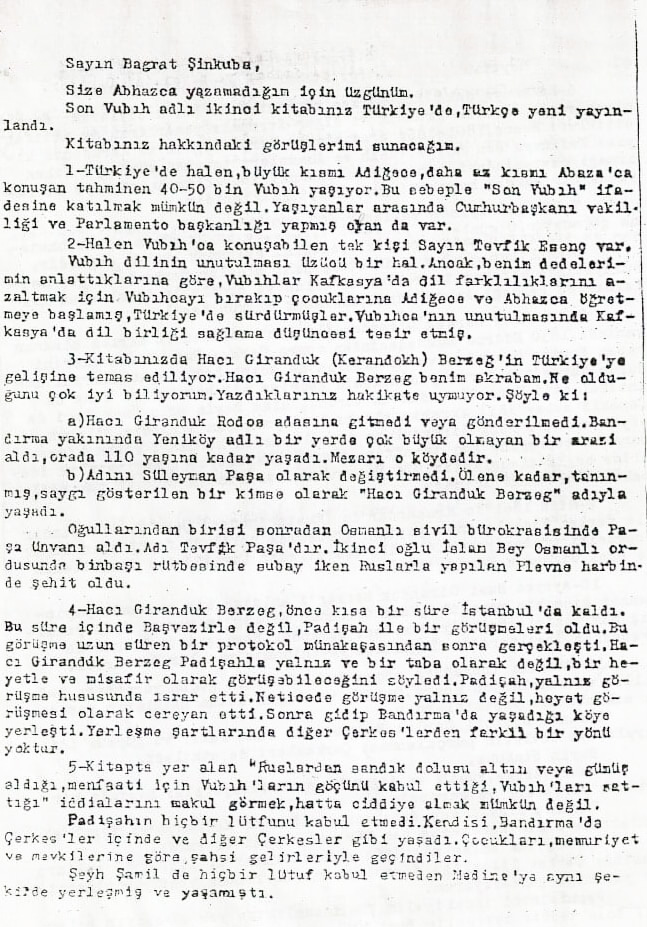 [3] Av. Kazım Berzeg, Bagrat Şınkuba’ya Mektup, BKD Arşivi