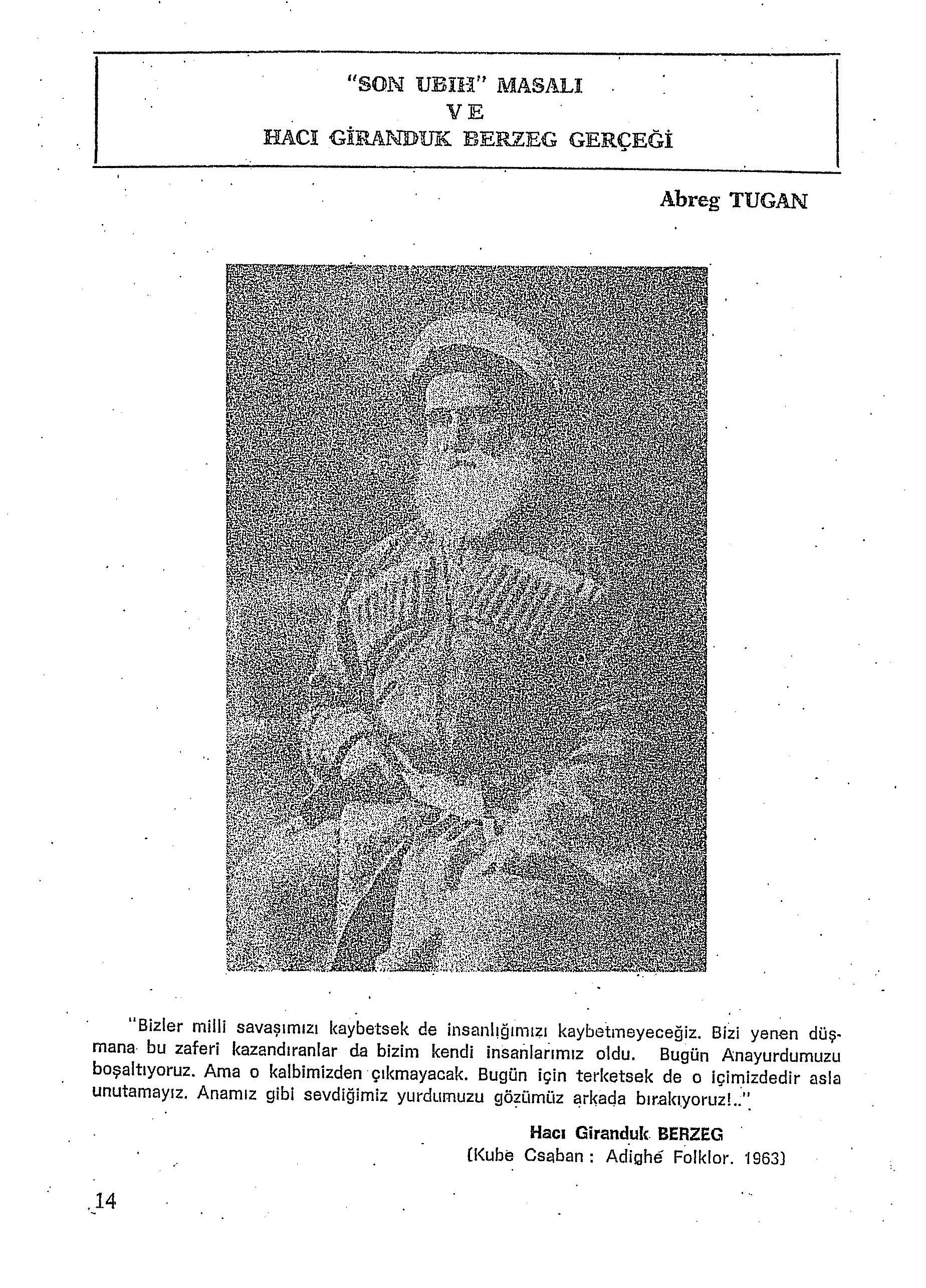 "Son Ubıh Masalı ve Hacı Giranduk Berzeg Gerçeği" Başlıklı Yazı.[2]