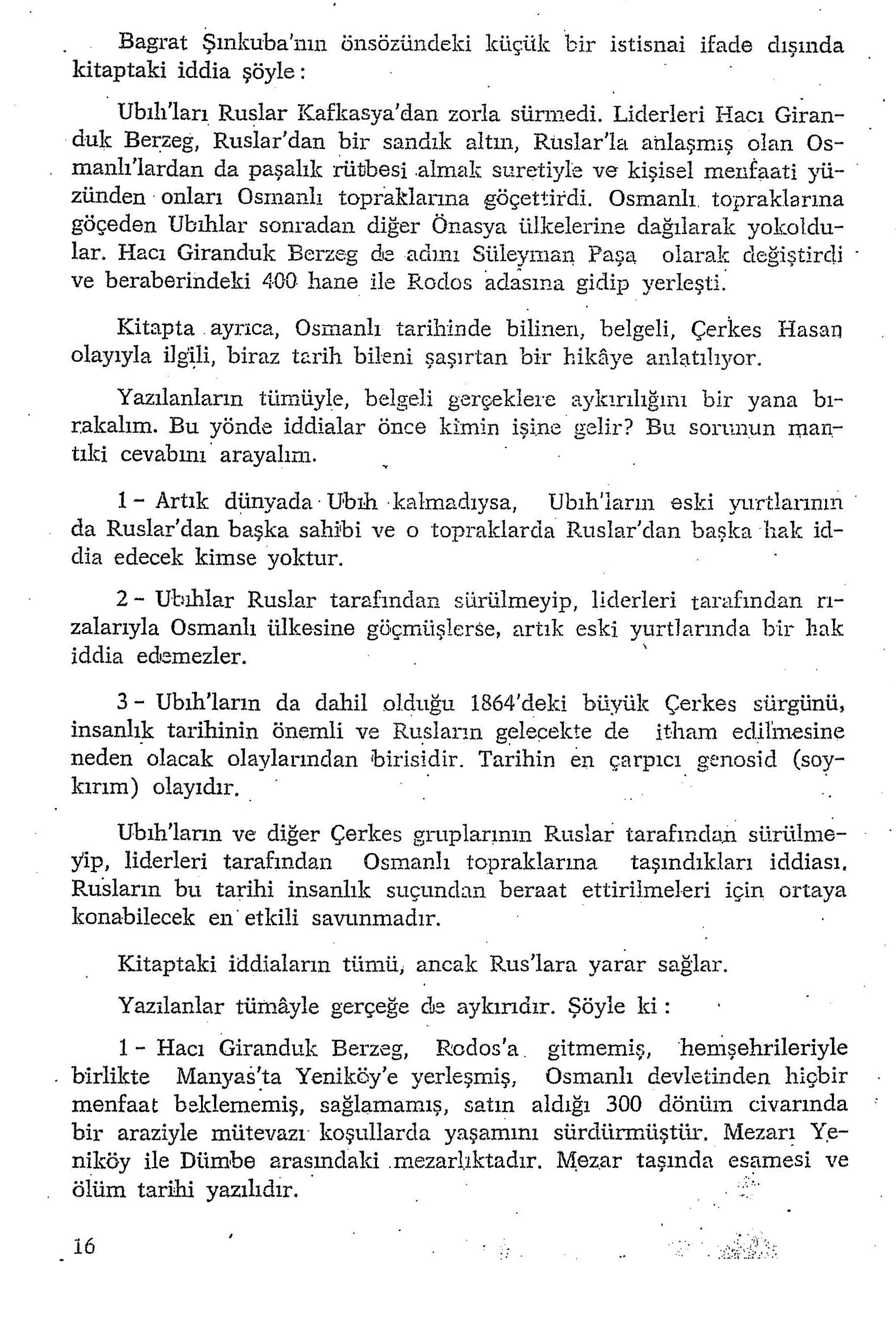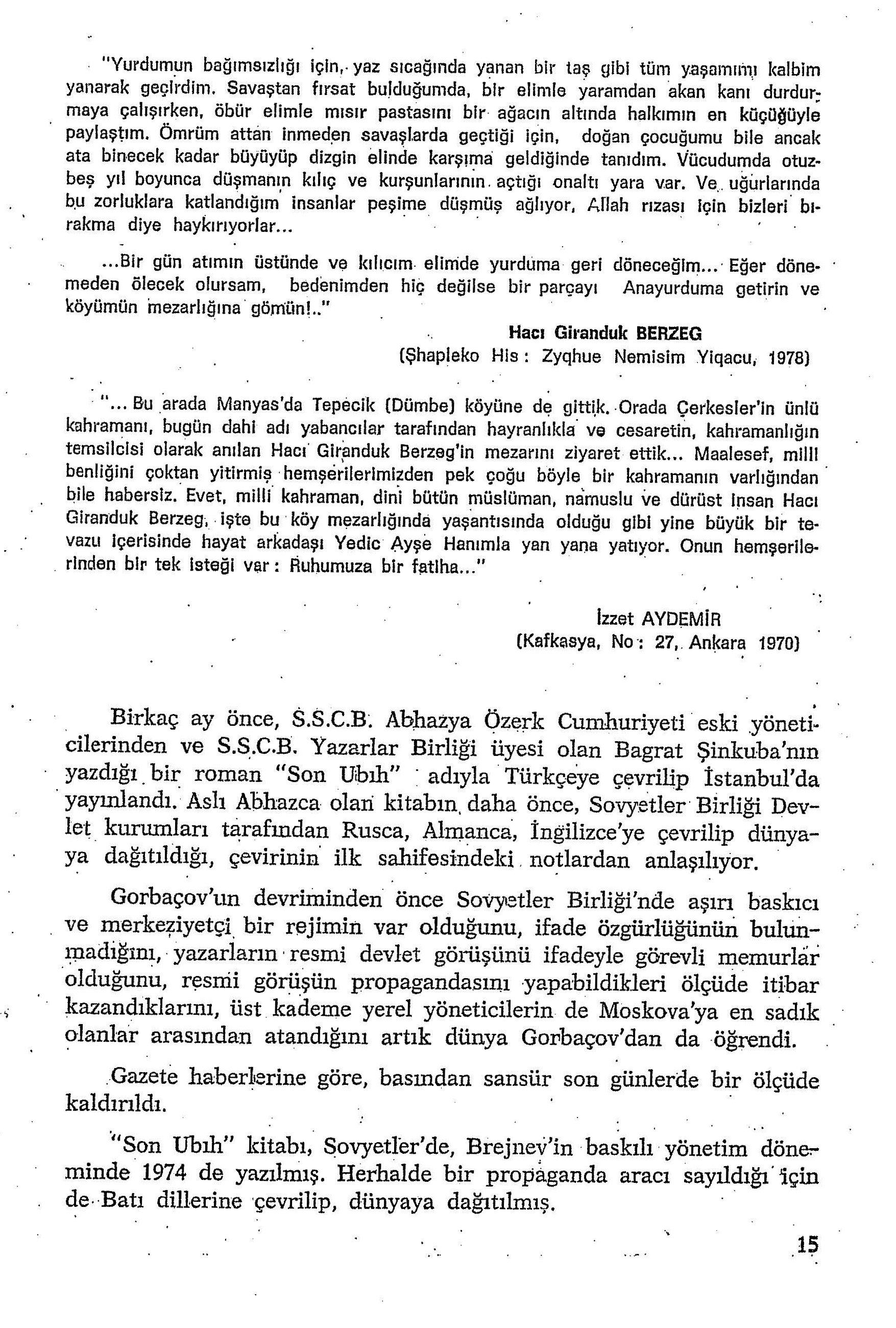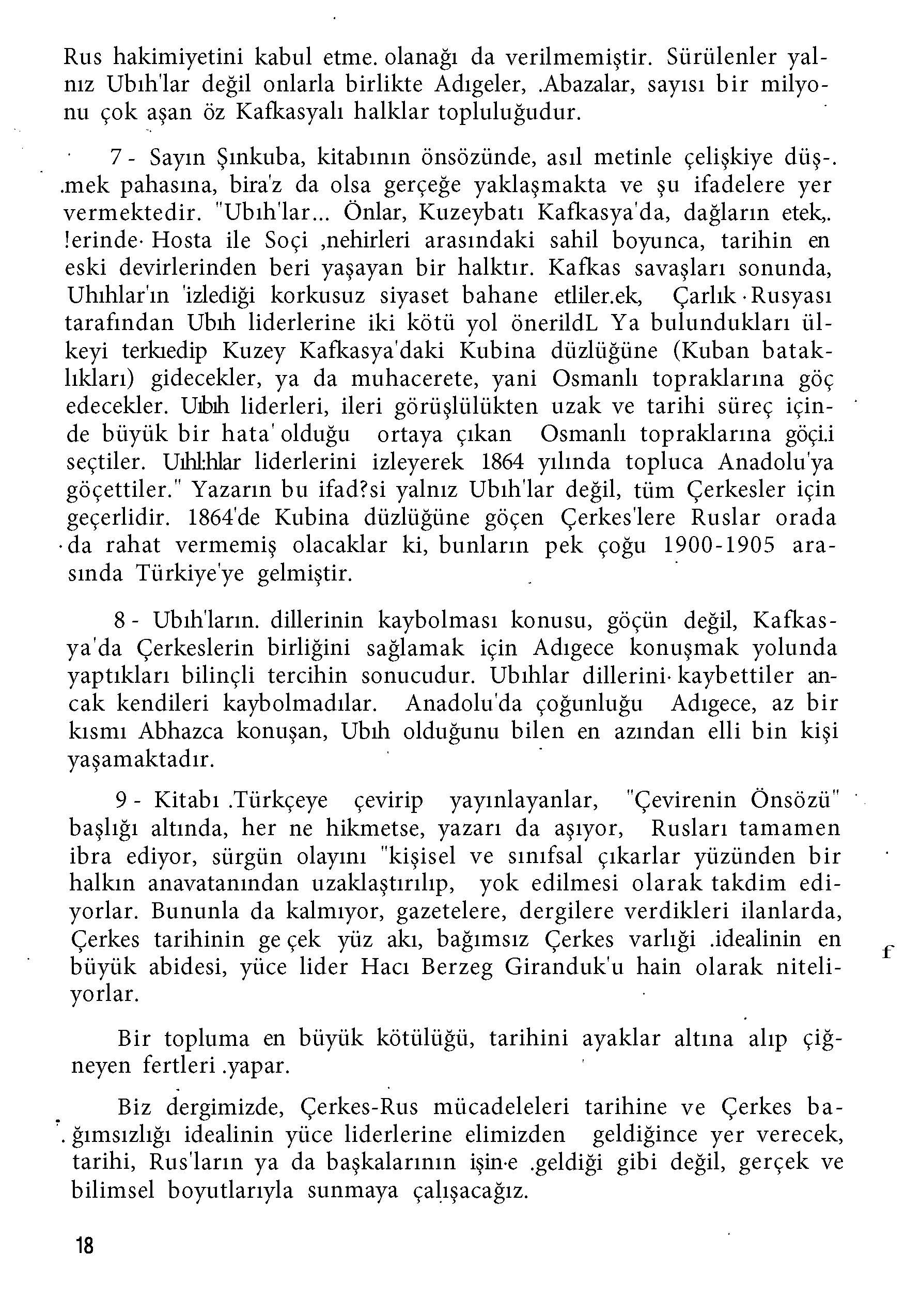 Bilgi ve kaynaklara erişimin bu denli kolaylaştığı 21. yüzyıl dünyasında dahi toplumumuzun kollektif hafızasıyla çelişen, tüm tarihsel gerçeklikleri ters yüz eden, daha açık ifadeyle tahrif eden ve sınırları tamamen “Sovyet çıkarları” ile belirlenmiş bu tür kurgu anlatılara başvurularak "elde edilmek istenen nedir; toplumumuzun soykırım ve sürgün tezleri açısından sakıncaları nelerdir; sonuçları ne olacaktır?" sorularına cevap aramak, tartışmak ve bulmak maksadıyla şimdilik Bagrat Şınkuba’nın "Son Ubıh" romanıyla ilgili daha önce yazılmış eleştirel belgeleri paylaşıyoruz.